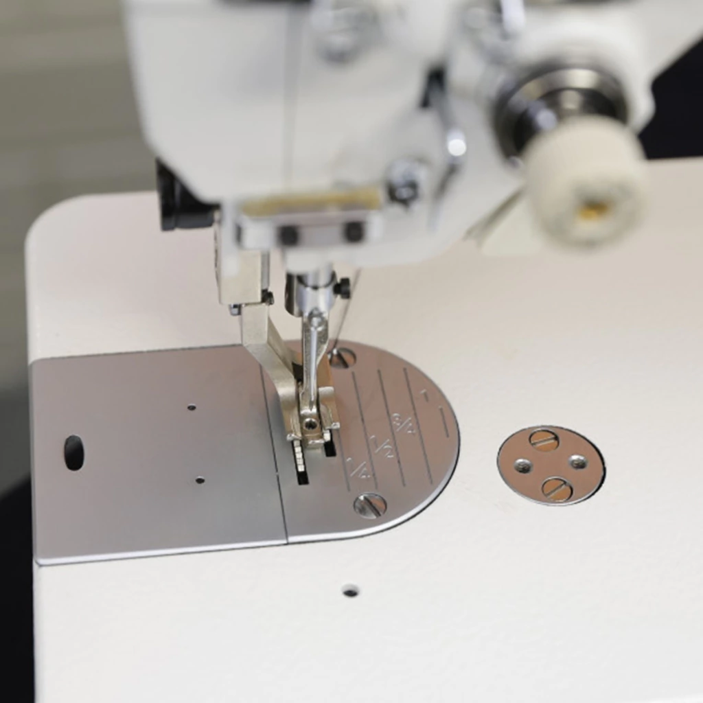 - Transporte Duplo (dente e calcador): Garante avanço uniforme do tecido, essencial para costuras perfeitas em materiais espessos e difíceis.